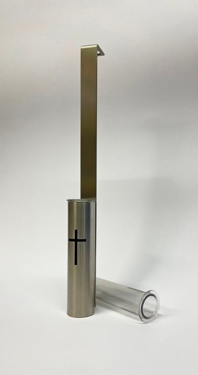 Entdecken Sie unsere einzigartigen handgefertigten Edelstahlvasen und Kerzenhalter. Soll die Vase zum Einhängen , Einklemmen oder auch Ankleben sein ? Das hängt von der jeweiligen Urnenwand ab. Bei aufgesetzter Platte empfiehlt sich das Einhängen (wichtig ist die Plattendicke) , bei ebener Platte zur Wand ist das Einklemmen (im oberen Spalt ) eine gute Wahl. Auch hier ist die Plattendicke und zusätzlich der obere Spalt für das Einklemmen zu messen. Die Halterlänge ist standardmäßig ca. 290 mm. Sie kann natürlich auch nach Wunsch geändert werden. Bitte beachten Sie , dass ohne Angabe der Anbringung - sowie Maßangaben der Plattendicke und oberer Spalt - keine Lieferung möglich ist. Sonderausführungen sind machbar. Bei Fragen stehen wir Ihnen selbstverständlich gerne zur Verfügung .